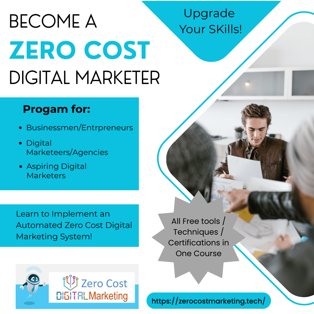 Become a skilled Zero Cost Digital Marketing Professional! Equipped with all tools, techniques and skills
